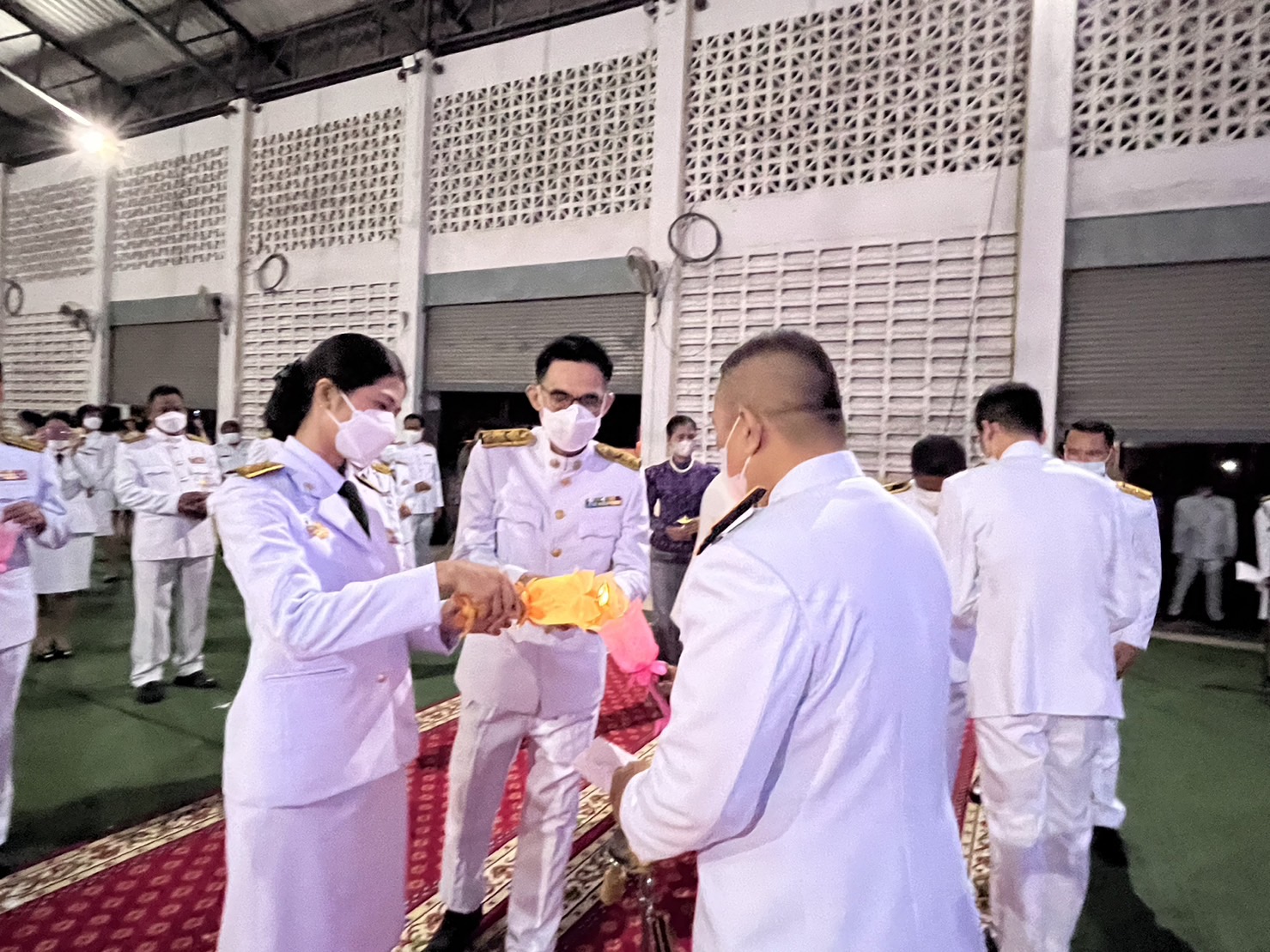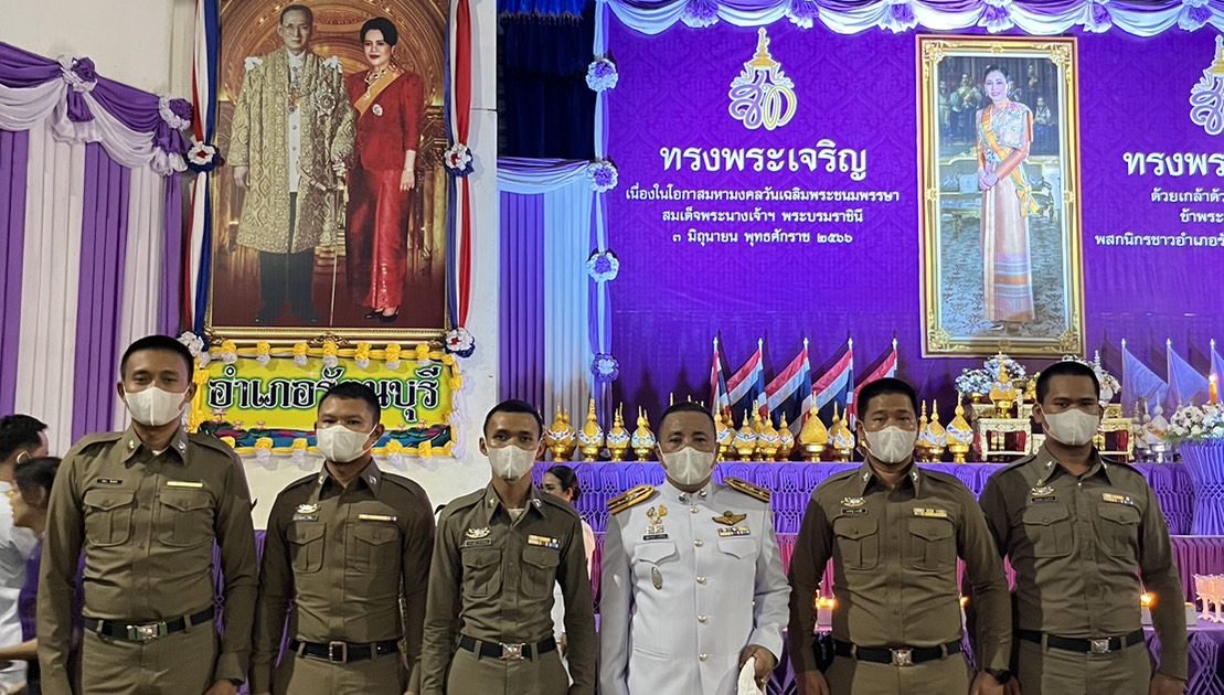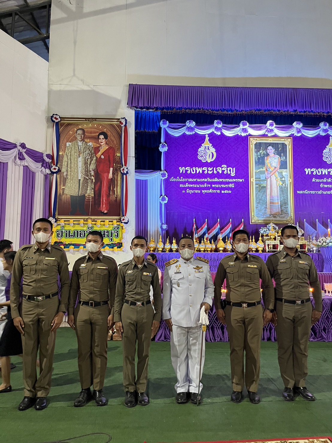 พ.ต.ท.ณัฐวรรธน์ มาลีพันธุ์ สวญ.สภ.ดอนแรด ร่วมพิธีวางพานพุ่มและจุดเทียนถวายพระพรชัยมงคล เนื่องในวโรกาสวันเฉลิมพระชนมพรรษา สมเด็จพระนางเจ้าฯระบรมราชินี ณ หอประชุมอำเภอรัตนบุรี จังหวัดสุรินทร์